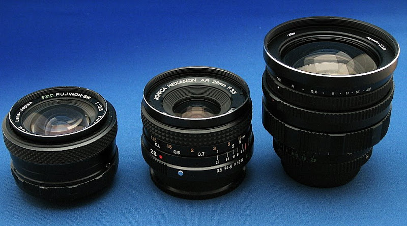 OK then here we go. I thought I had a zuiko 28/3.5 but couldn't find it so here I've included a 28/3.5 Fujinon and a 28/3.5 Hexanon. I'll see if I can find an interesting flower or person for some test shots tomorrow.