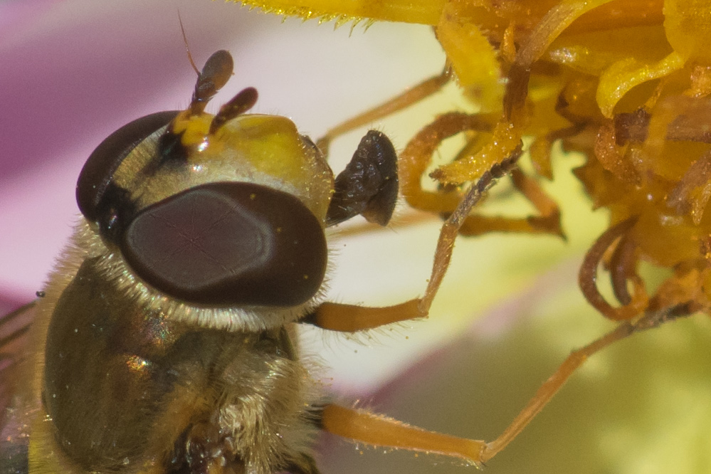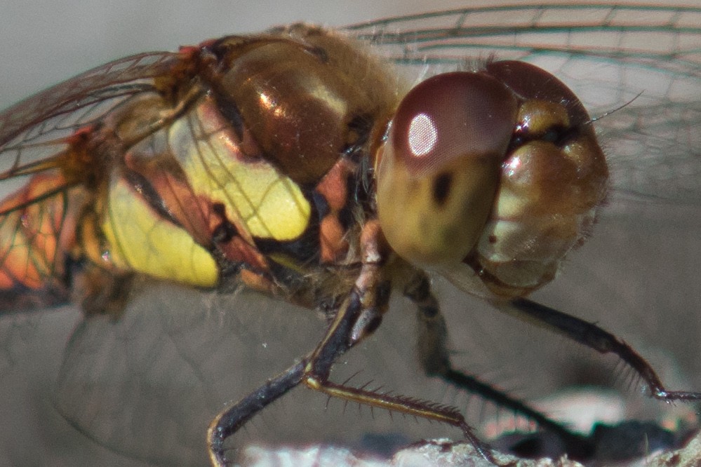 I spent a wee while trying to photograph some flies but most turned out front focussed. I think I used LV with this one. This is 1:1 pixel peep crop, f11.
