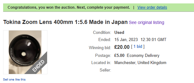 I didn't want to buy any more lenses this year nor do I want to collect Panagor zooms (just the primes) but I was curious about this one and it popped up in a saved search so I snapped it up before it would go for 10 euro's. So I bid 25 and it was in instant sale.